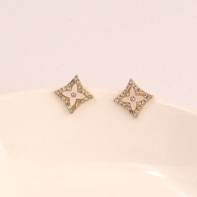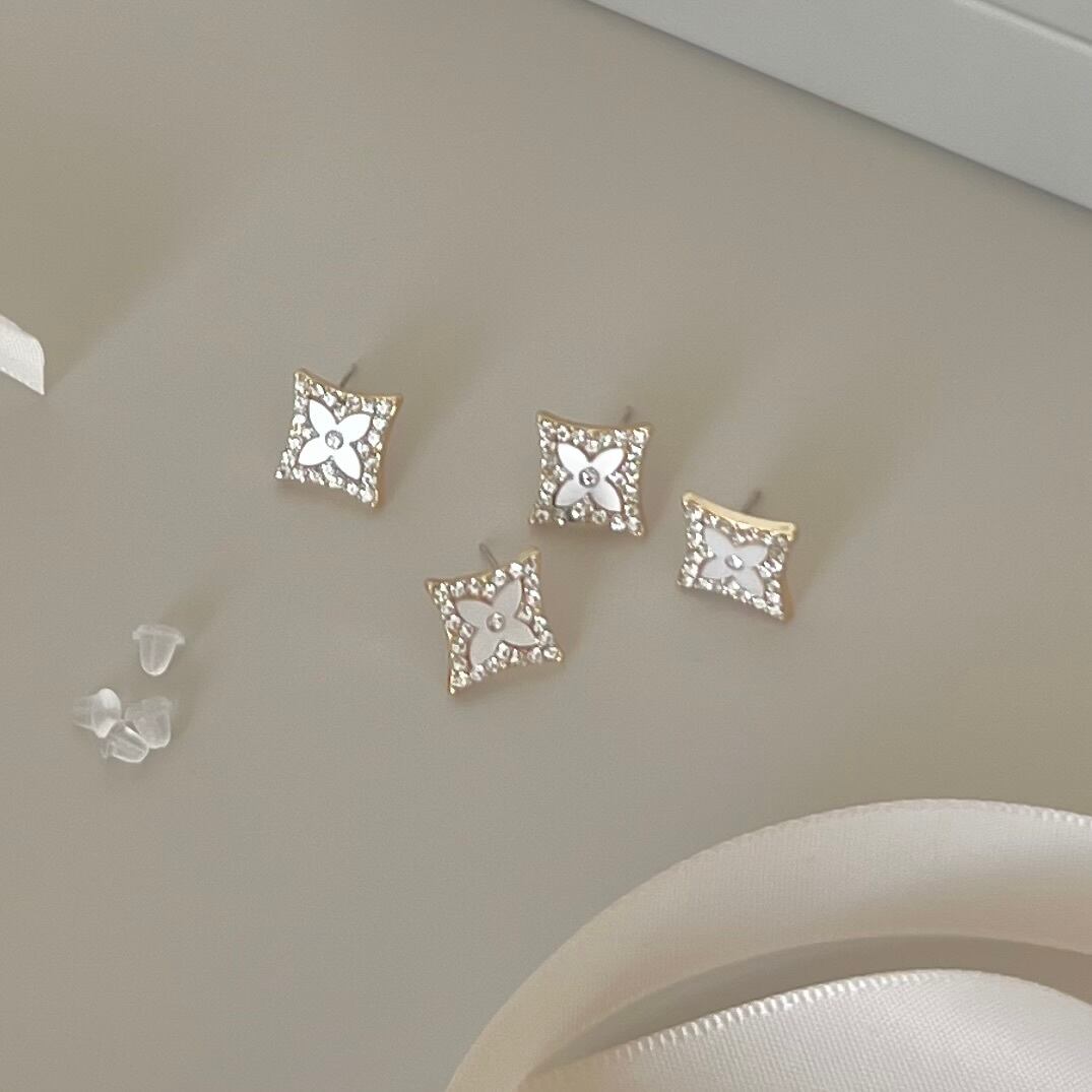 ダイヤの形が特徴のレトロなお花のピアス